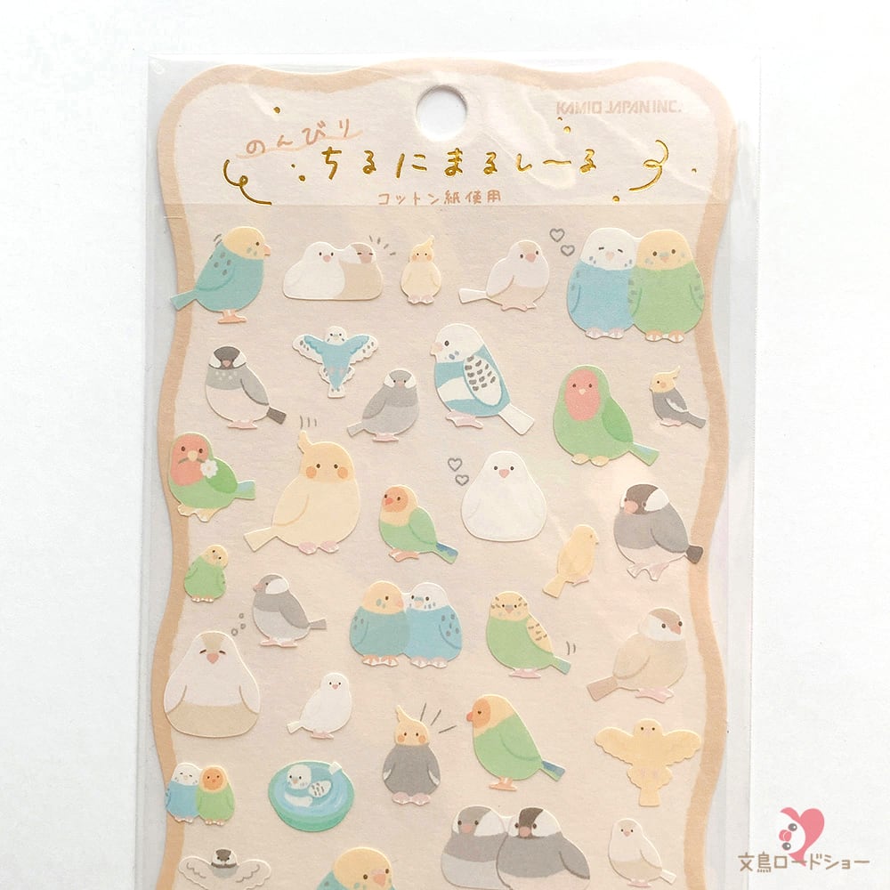 「シール / のんびりちるにまるしーる / ことり」文鳥・インコ大集合のシール / 小鳥 / カミオジャパン / 透明シート*パステルオレンジの台紙【生産終了・在庫限り】