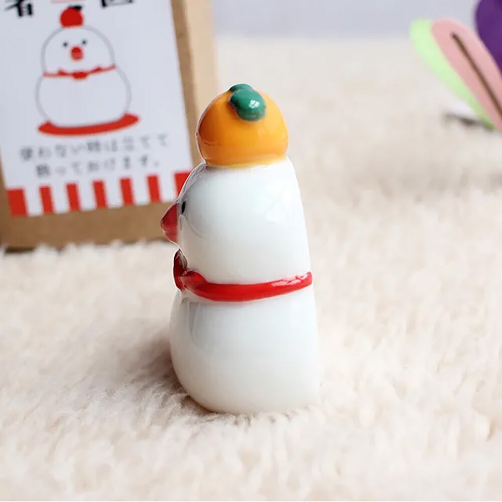 「小さな鏡餅としても楽しめる、陶器の文鳥箸置き」