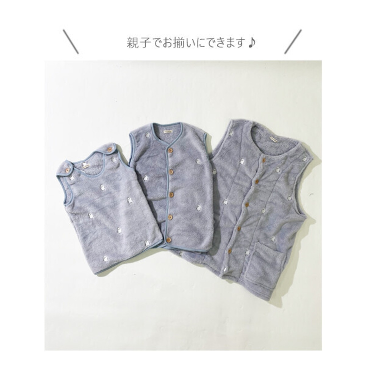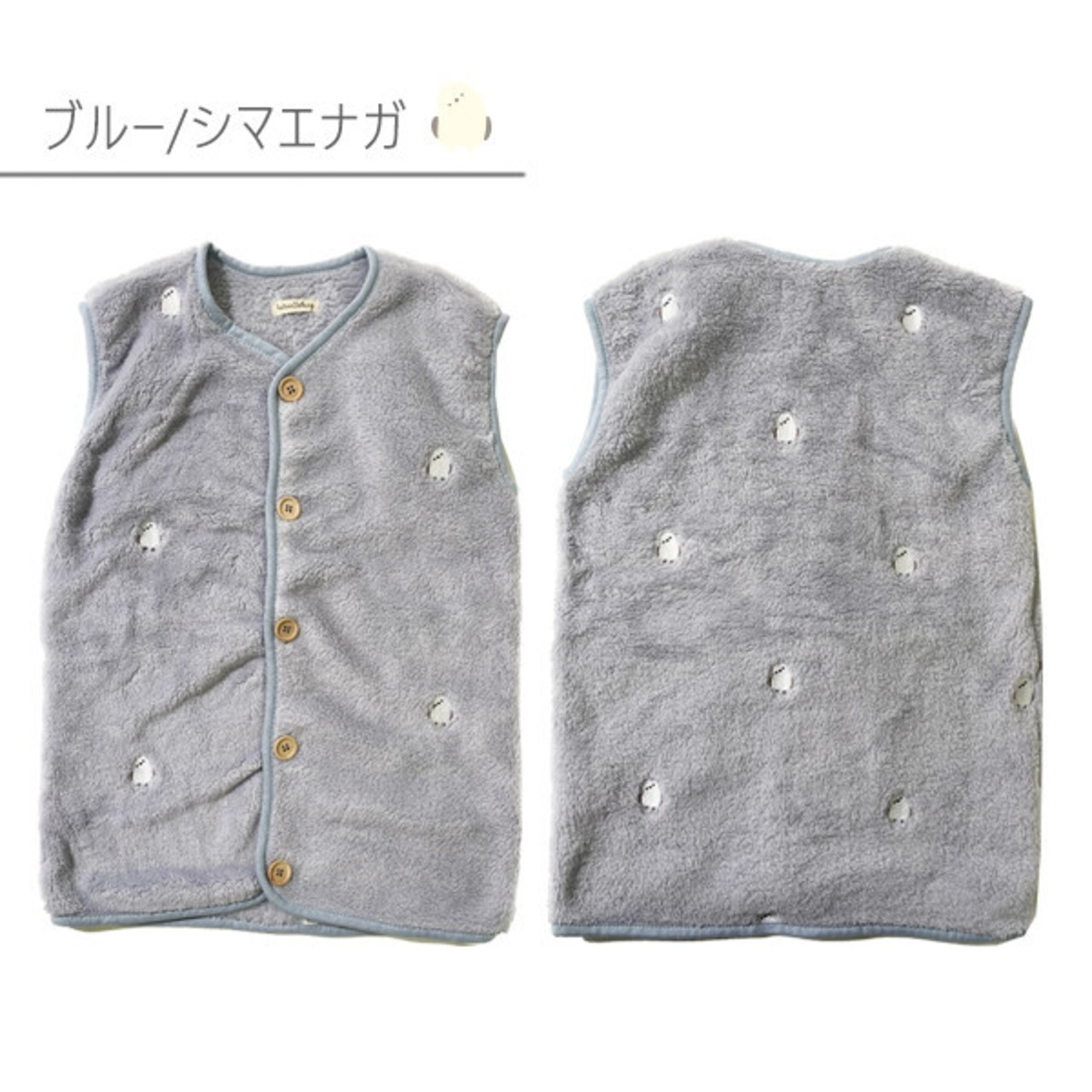 【前ボタン】「キッズ刺繍スリーパー / シマエナガ / ブルー / 80〜100cm」シマエナガ刺繍のキッズおやすみベスト*ブルーグレー