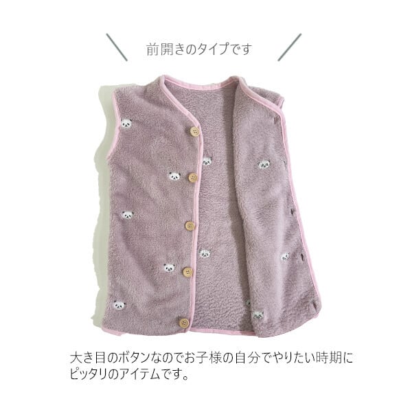 大きめボタンの前開きでお子さま自身でも着やすく、就寝時や朝の冷え対策にぴったり。