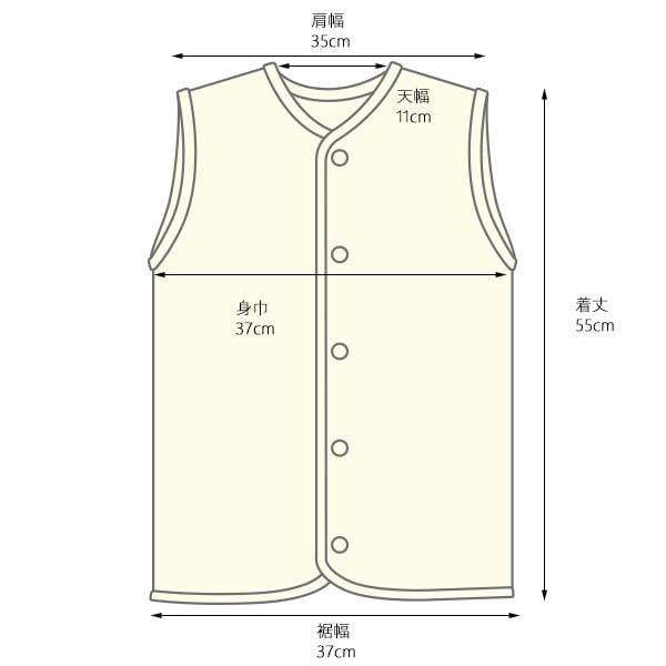 サイズ: 身丈 約55cm、身幅 約38cm(対応目安:80〜100cm)
