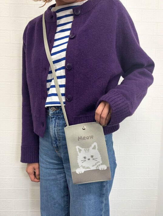 寄り添うシマエナガが愛らしい、ニット素材のミニショルダーバッグ。