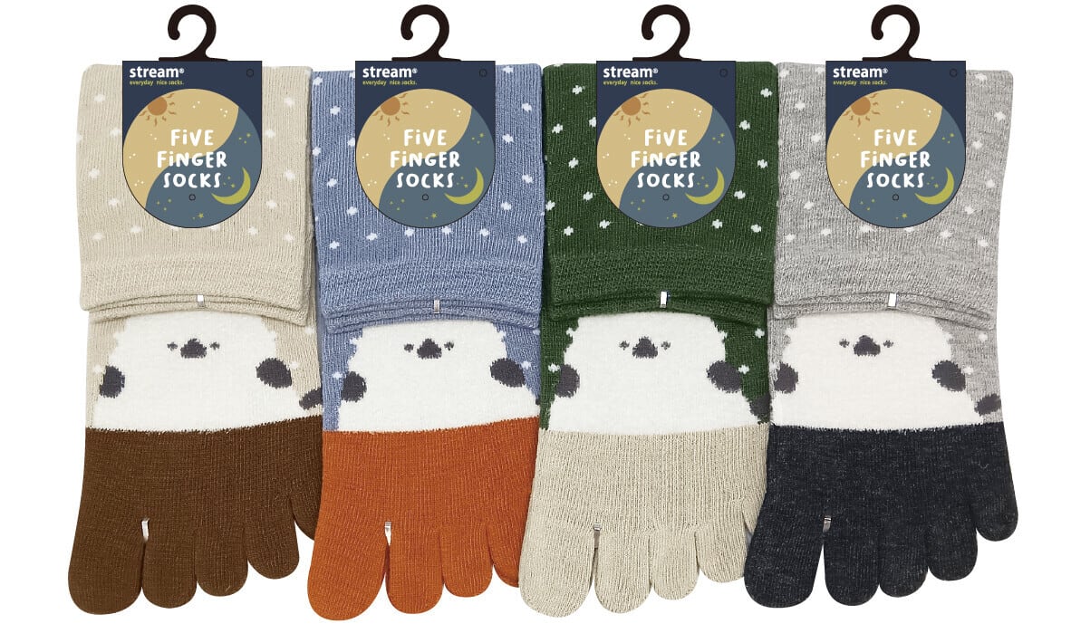 シマエナガがちょこんと顔をのぞかせる、冬のあったか5本指ソックス。