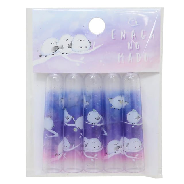 【ラスト3!】「えんぴつカバー5本セット / エナガノマド」シマエナガ / 透明にふわふわパープル&ピンクの雲 / クリア素材 / クーリア
