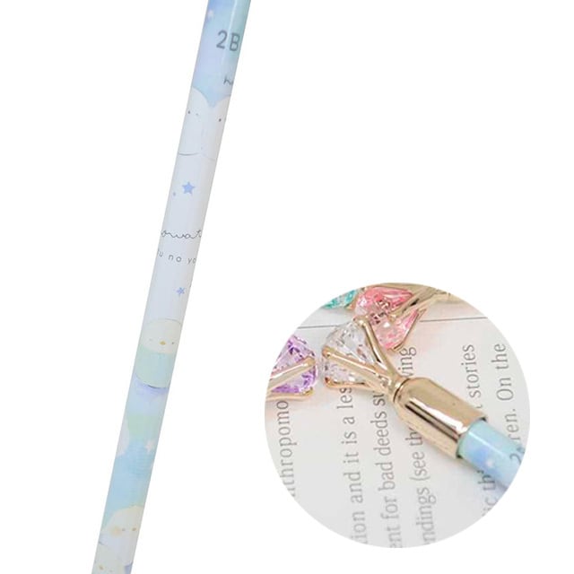 キラキラダイヤモンド風の透明ジュエルつき、ラブリーな2B鉛筆です。